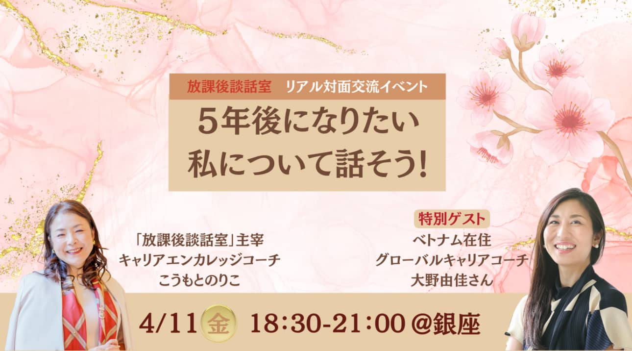 Reader さん キャリアは生き方。 グローバルキャリアコーチの大野由佳です。 Xin Chào!(シンチャオ) 3月20日、今日は春分の日。 始まりのエネルギーが高まる日とも言われている今日、 働く女性の勇気づけ専門 キャリアエンカレッジコーチの のりのんこと、こうもとのりこさんとは いちばんは、働く女性の幸せを応援したい 交流会のテーマは 20年以上の企業キャリアを経て きっと皆さんの中にも 今回、リアルに繋がれるこの機会に _______________________________ 詳細&参加申し込みはリンク先をご覧下さい。 ★3/20 春分の日の正午よりお申し込みオープンしました🌸 お久しぶりの方も初めましての方も こちらのメールレターへのご感想も随時受け付けています! ご縁に感謝を込めて。 YUKA より豊かな人生の実現に大切なヒントが得られるメールレター |